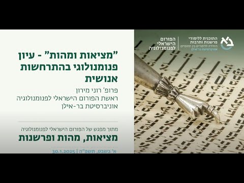 "מציאות ומהות" - עיון פנומנולוגי בהתרחשות אנושית, פרופ' רוני מירון